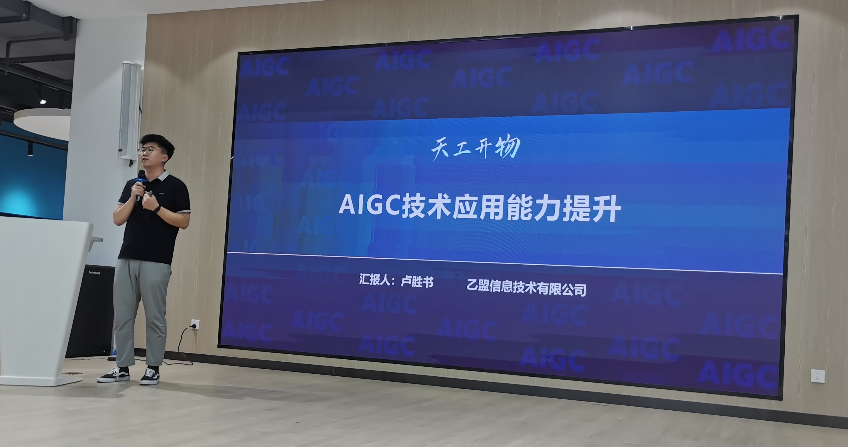 乙盟信息技术有限公司售前技术顾问卢胜书,聚焦技术实践,开展“天工开物-AIGC技术应用能力提升”。他通过天工开物多模态大模型,详细讲解AI在纹样生成、海报设计、周边设计、三维模型设计及视频制作等方面的具体应用,为参赛者提供实用的技术指导。