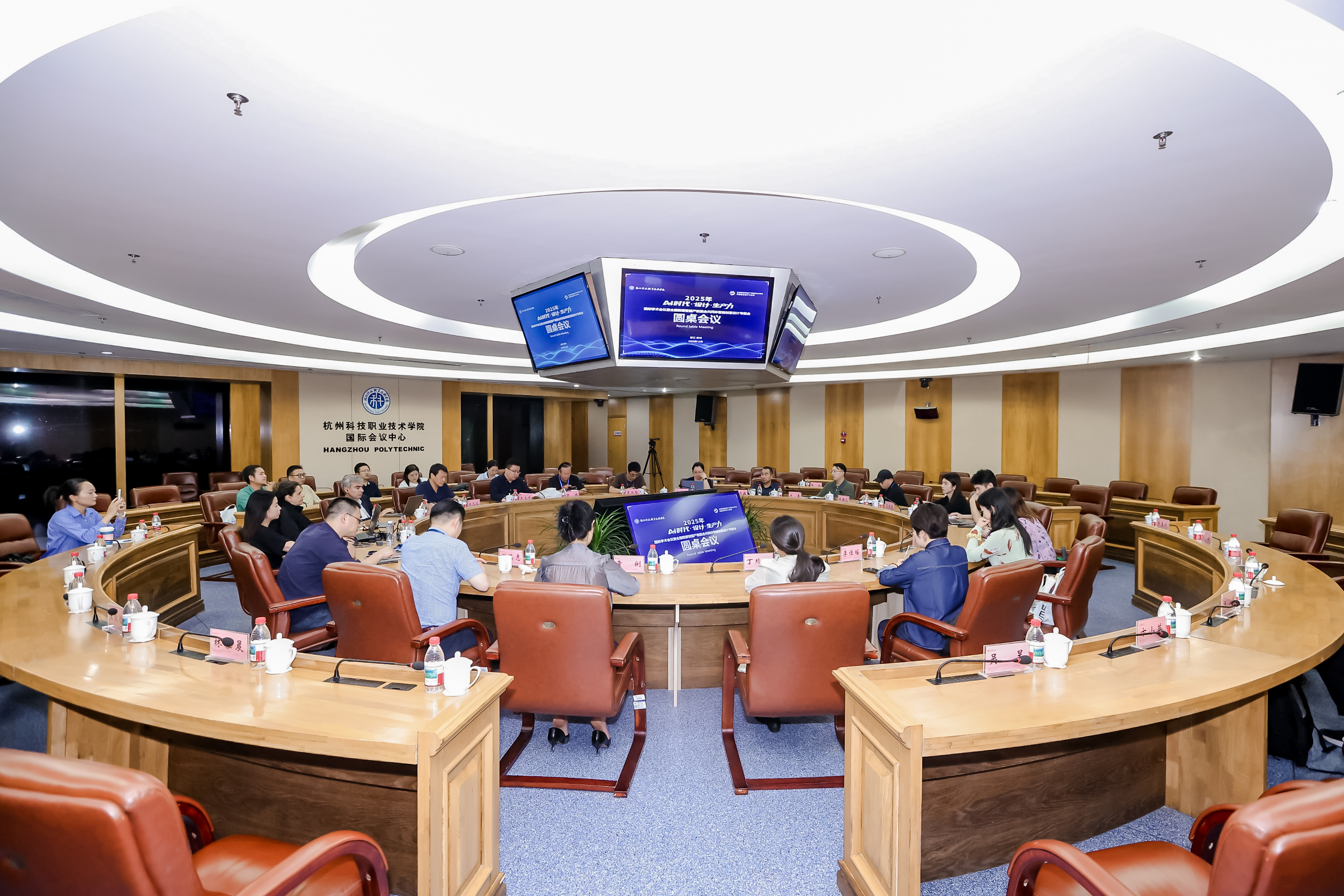 杭州科技职业技术学院校长温正胞,全国智能创意设计专委会主任、山东工艺美术学院数字艺术与传媒学院副院长张光帅,杭州群核信息技术有限公司副总裁汤锡峰,浙江华策影视集团副总裁夏欣才,中国传媒大学动画与数字艺术学院党委书记、教育部动画与数字媒体专业教学指导委员会秘书长黄心渊,广东轻工职业技术大学艺术设计学院院长、教育部职业院校艺术设计类专业教育指导委员会副秘书长兼产品设计专门委员会主任委员桂元龙,美国密歇根大学博士、同济大学设计创意学院教授、尚想实验室主任康思大(Kostas Terzidis),设计战略家与设计教育者奥拉·汉德福德(Ola Handford),环境与空间设计专家、STOREAGE设计总监金仙英(Sunny kim),同济大学设计创意学院教授、博导陈健,浙江科技大学艺术设计与服装学院院长、教授郑林欣出席活动。