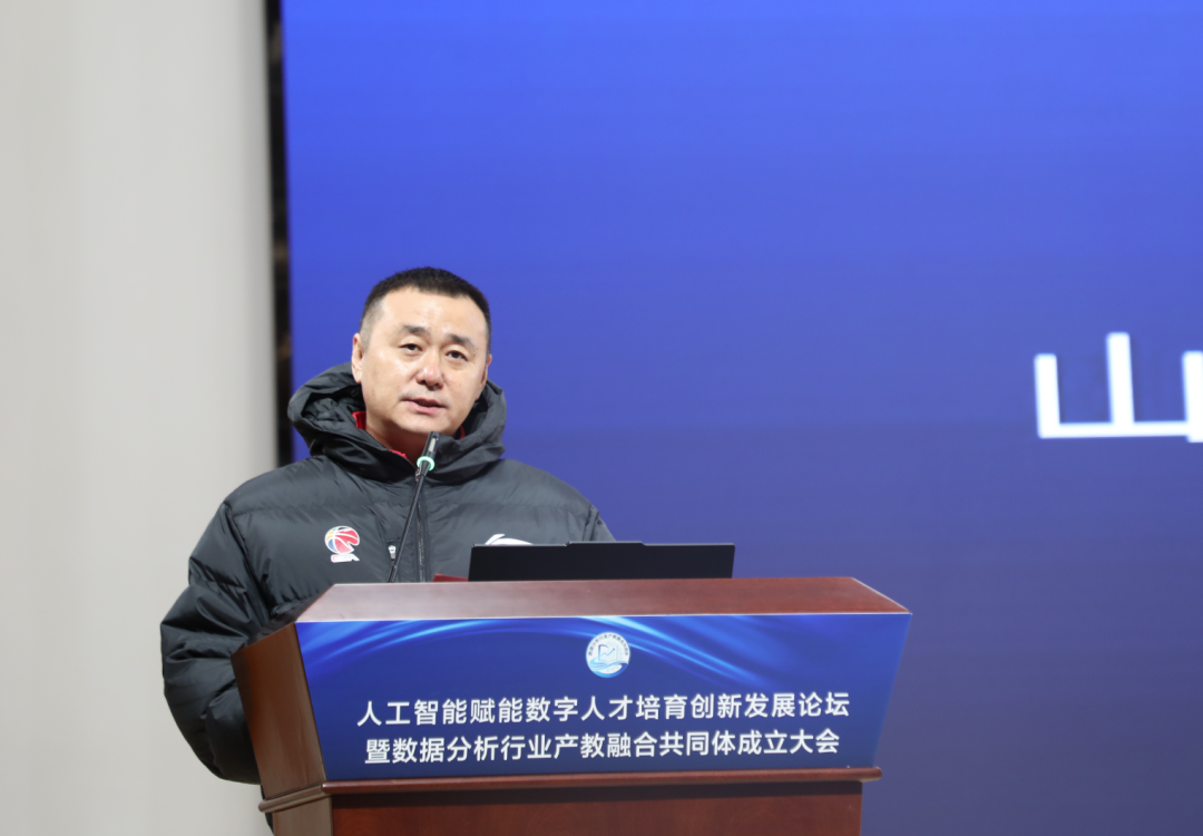 日照科技职业学院总督学王建良在致辞中表示,山东省正深入推进数字强省建设,统筹推进数字产业化和产业数字化,数据分析行业产教融合共同体的成立,既是加快经济社会发展质量变革、效率变革、动力变革的重要引擎,更是汇聚区域优势资源、服务产业升级的重要举措。